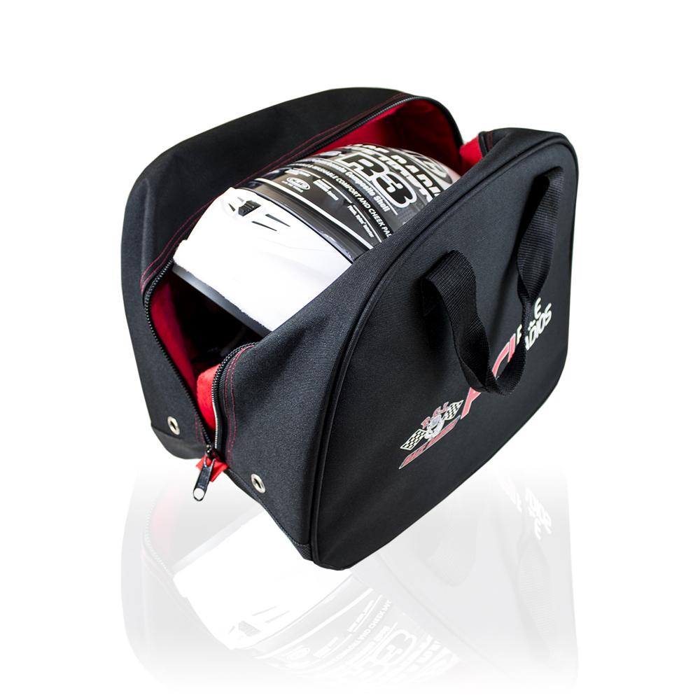 Constructed with mesh nylon that allows the bag to "breathe", and thus keeping your helmet fresh before and after a race, and featuring external pockets and a large primary storage compartment with a zipper opening, our helmet bag offers everything that you need to keep your helmet safe between uses. A helmet bag is something that every motorsport enthusiast should have, as it's great for not only transporting helmets, but also storing helmets both at home and at the track.